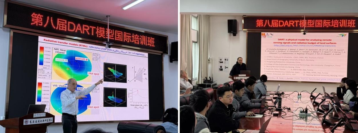 本次培训,Jean-Philippe Gastellu-Etchegorry教授系统讲解了DART模型的物理基础、核心算法与最新功能,涵盖了光学遥感与辐射传输基础理论,DART模型架构、功能模块与最新进展,标准化案例实操,学员个性化案例研究指导等内容,使学员们深入了解了模型在复杂地表与三维场景模拟中的优势与使用方法,为遥感大气建模、传感器仿真、城市热岛研究、SIF模拟、地表反照率与辐射收支计算等研究提供了理论知识和实践帮助。同时,在交流环节,Jean-Philippe Gastellu-Etchegorry教授和曹彪教授围绕模型参数设置、应用场景拓展及实际科研问题,深入浅出、条理清晰地为同学们解答困惑,分享宝贵经验与实践心得,使在场师生对DART模型有了更加全面而深入的认识和理解。